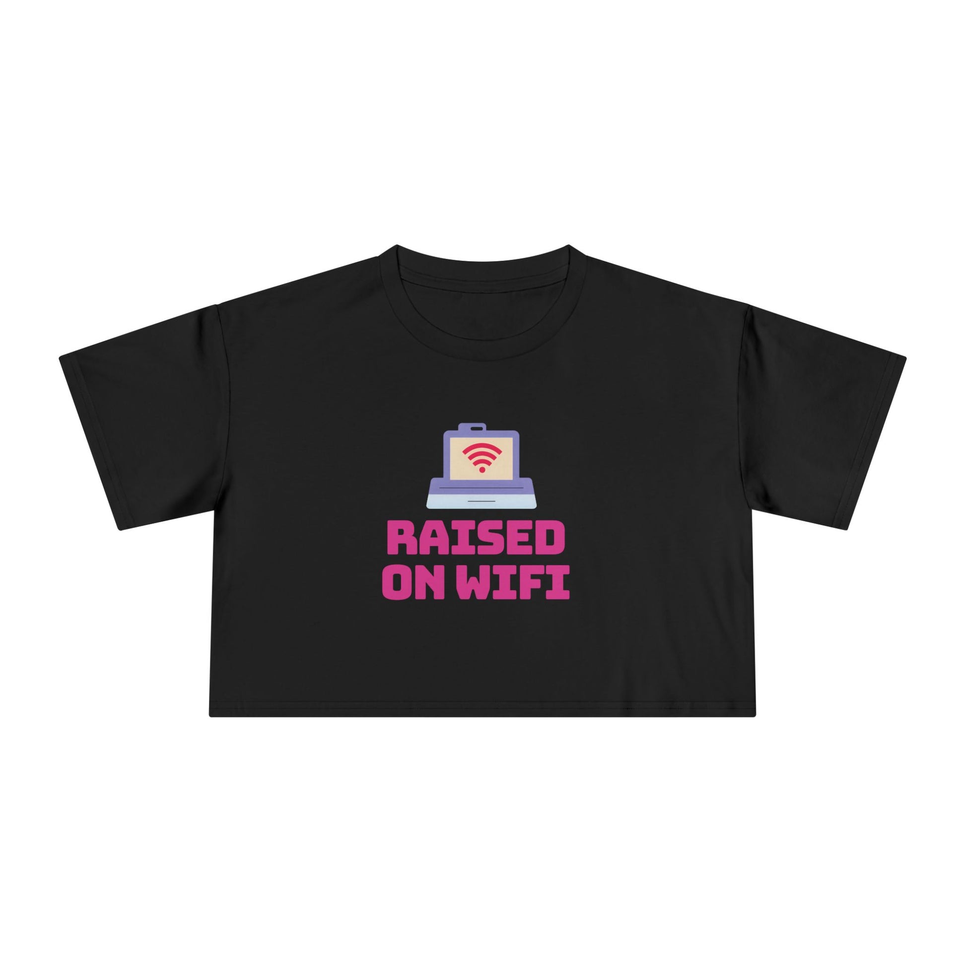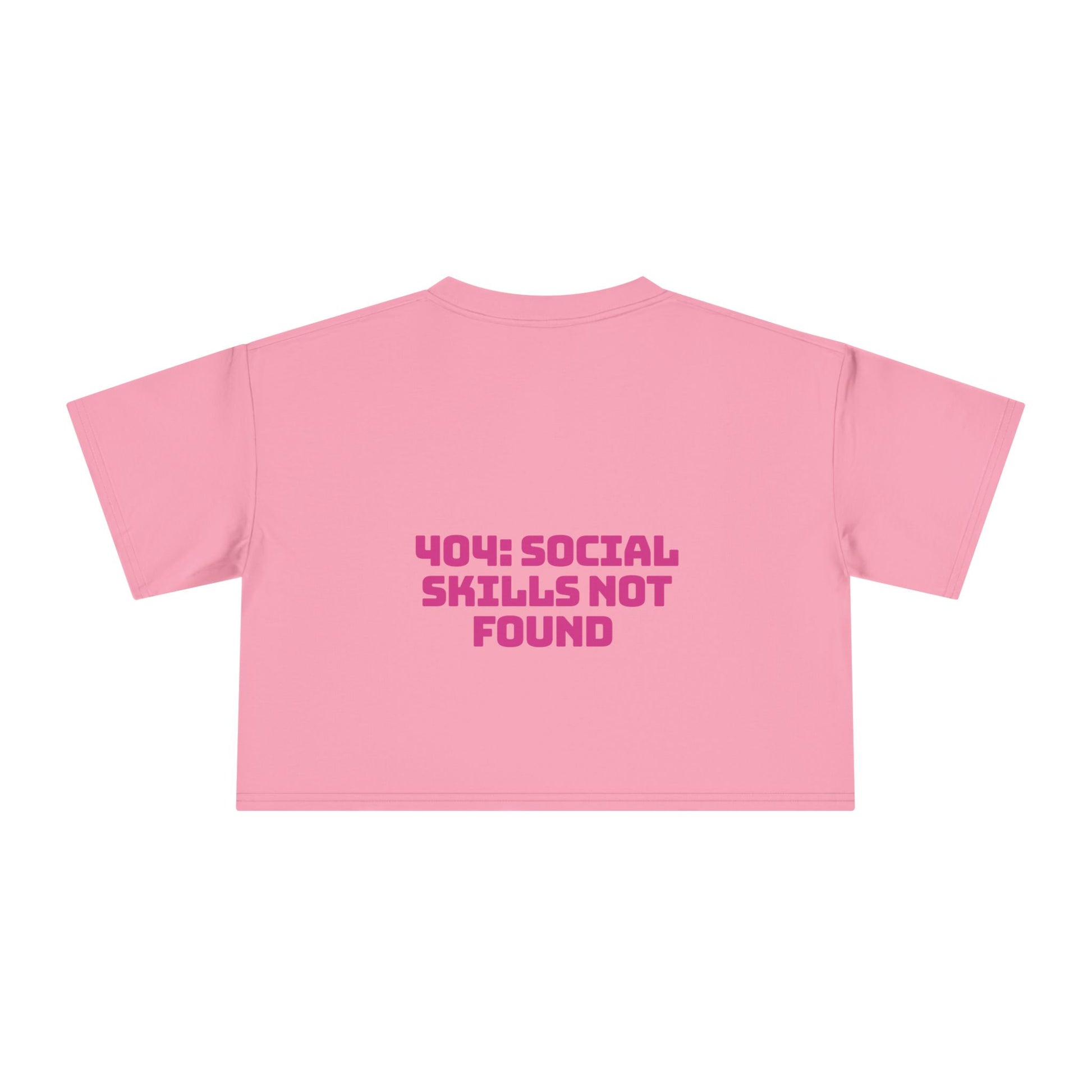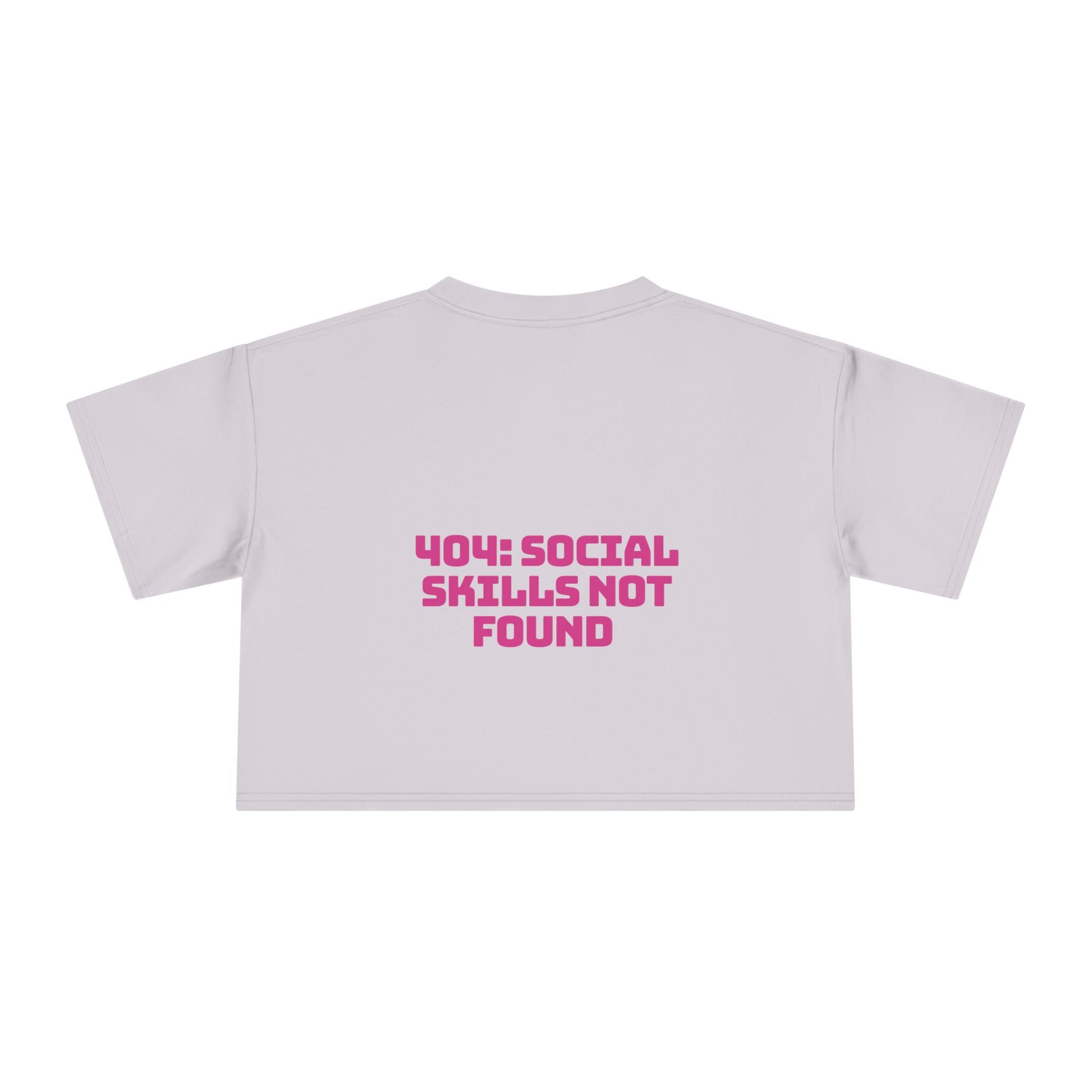 Crop Tee - "Raised on WiFi" Graphic Crop Top (Front Laptop Icon, Back: "404: Social Skills Not Found")